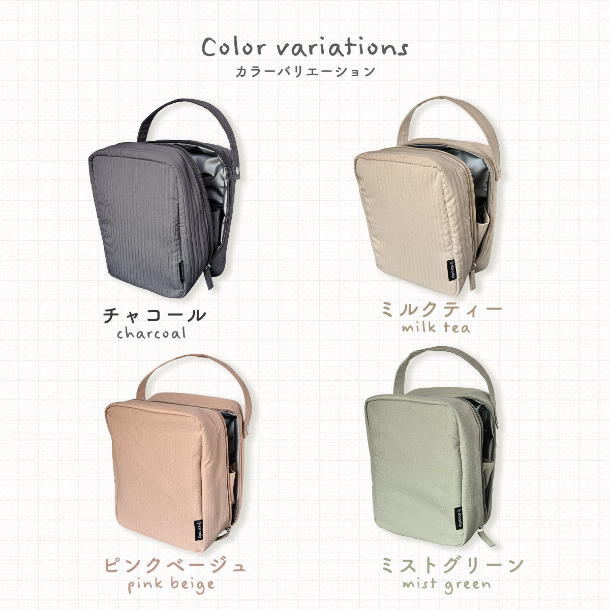 内側は暑い夏や寒い冬のお出かけにも便利な保冷・保温素材素材になっています。