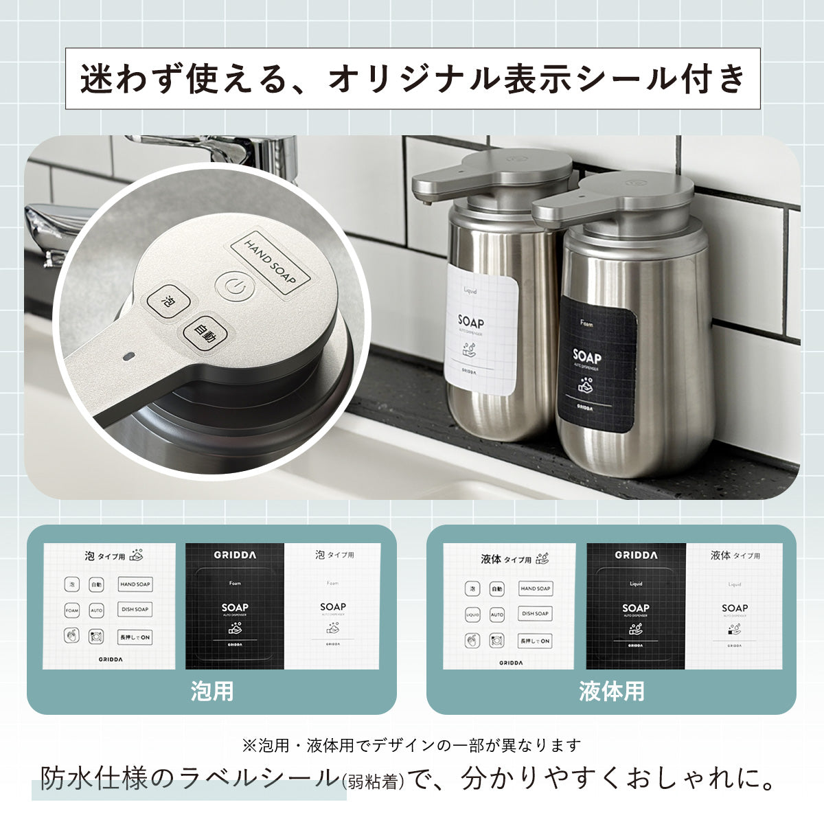 泡用、液体用それぞれに、オリジナルの表示シール付き。