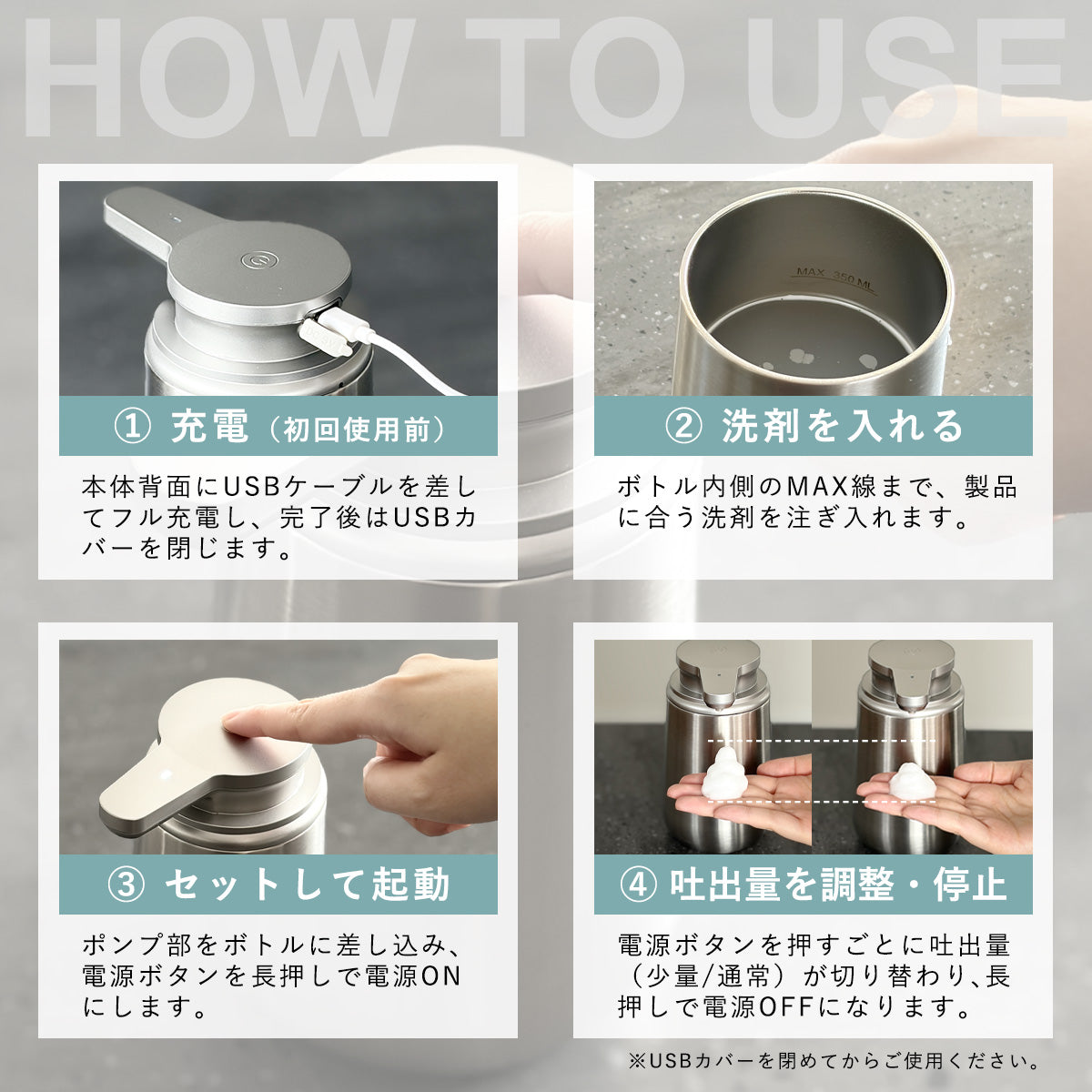 ボトルに手を触れずに、清潔&ストレスフリーにお使いいただけます。