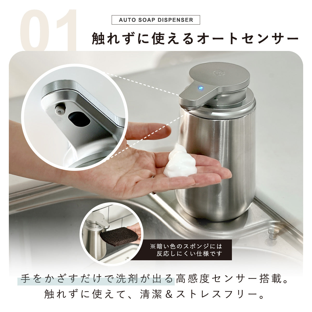手をかざすだけで洗剤が出る高感度センサー搭載。